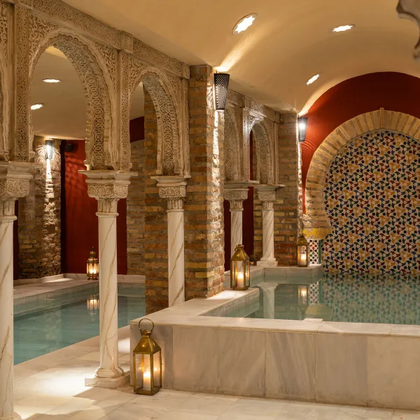 Déjate llevar por el suave murmullo del agua, el cálido vapor y los aromas envolventes de nuestros baños termales durante un recorrido libre por nuestras siete piscinas de diferente temperatura, baño turco y piedra caliente.
